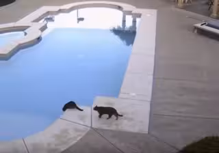 El vídeo, reproducido más de 300.000 veces, muestra a un gato curvado hacia adelante olisqueando la piscina de una vivienda. En un momento dado, su hermano (según la descripción del vídeo) aparece sutilmente por detrás para arrojarle con un zarpazo a la piscina. Toda una secuencia que deja alucinado a quien la visualiza.