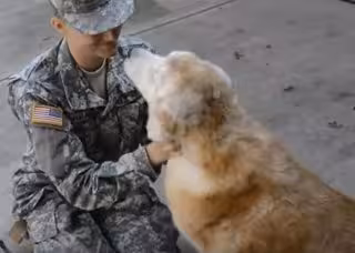 En la grabación, la soldado saluda y consuela a su perro con caricias y mimos cuando éste, emocionado y gimiendo de alegría, se lanza sobre ella para saludarla. Una escena que te pondrá los pelos de punta y te hará sentir ternura por la reacción tan sentida del animal.