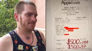 Kasey Simmons, un camarero de la cadena de restaurantes Applebee's, se sorprendió al recibir el pasado martes una propina de 500 dólares en una cuenta que ni tan siquiera llegaba a medio dólar. No, no fue ninguna equivocación: la familia que le dejó la propina quiso recompensarle por un acto de amabilidad que Kasey había tenido el día anterior con la abuela de la familia.