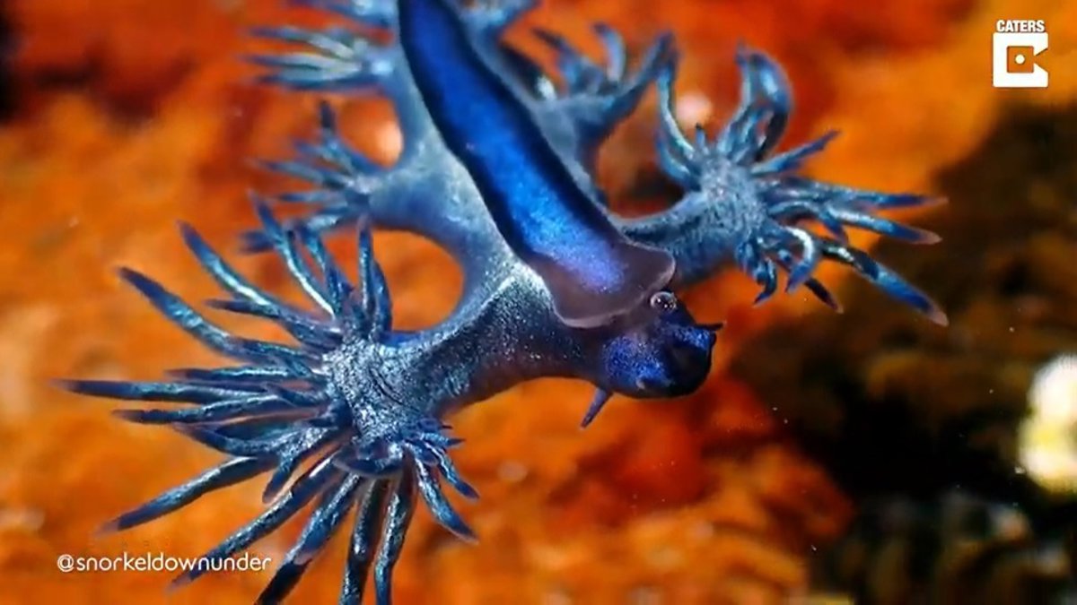 El 'dragón azul' originariamente llamado Glaucus Atalnticus es un molusco gasterópodo del orden de los nudibraquios. Su tamaño varía entre los 3 y los 4 centímetros de largo, y se caracterizan por una coloración azul plateada en su parte dorsal y unas rayas azules oscuras casi negras en sus extremidades.