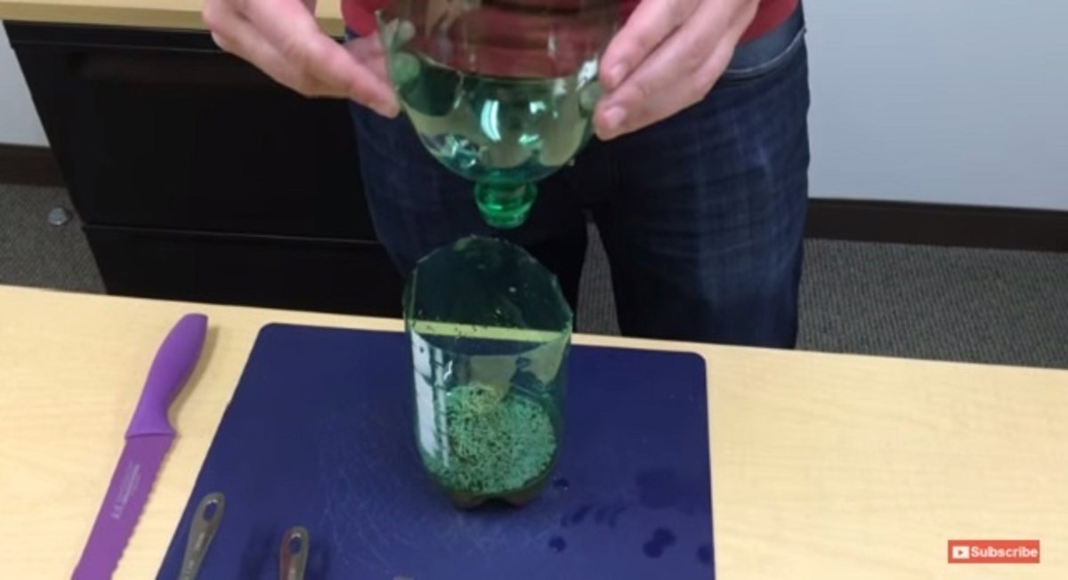 El proceder también es sencillo: Cortamos la botella de tal forma que obtengamos una pieza parecida a un embudo que mida 1/3 de la botella. Vertemos la medida de agua templada, la de azúcar y por último los polvos de levadura. Mezclarlo todo bien.