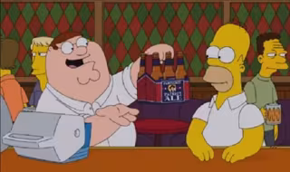 Las imágenes que muestran a un Stewie haciendo migas con Bart, mientras Homer y Peter Griffin discuten sobre cuál cerveza es la mejor, forman parte del capítulo cuya fecha de estreno prevista es para el 28 de septiembre de este año y cuya duración será de una hora.