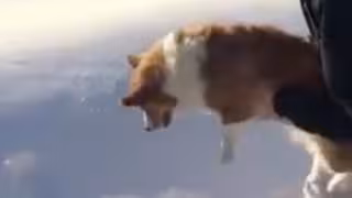 Este perro en cuestión está a punto de ser lanzado desde un avión. O eso es lo que parece nada más ver la miniatura del vídeo antes de reproducirlo.