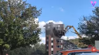 Sin embargo, los planes se torcieron cuando la grúa que estaba excavando el edificio golpeó una parte inestable, lo que provocó un derrumbe imprevisto de escombros que terminaron cayendo sobre la grúa, sepultándola parcialmente.