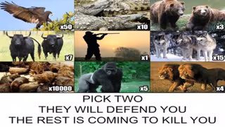 Entre las opciones hay 50 águilas, 10 cocodrilos, 3 osos, 7 toros, 1 cazador, 15 lobos, 10.000 ratas, 5 gorilas y 4 leones. El desafío, como decimos, es seleccionar dos conjuntos de esos animales para protegerte, eligiendo con cabeza.