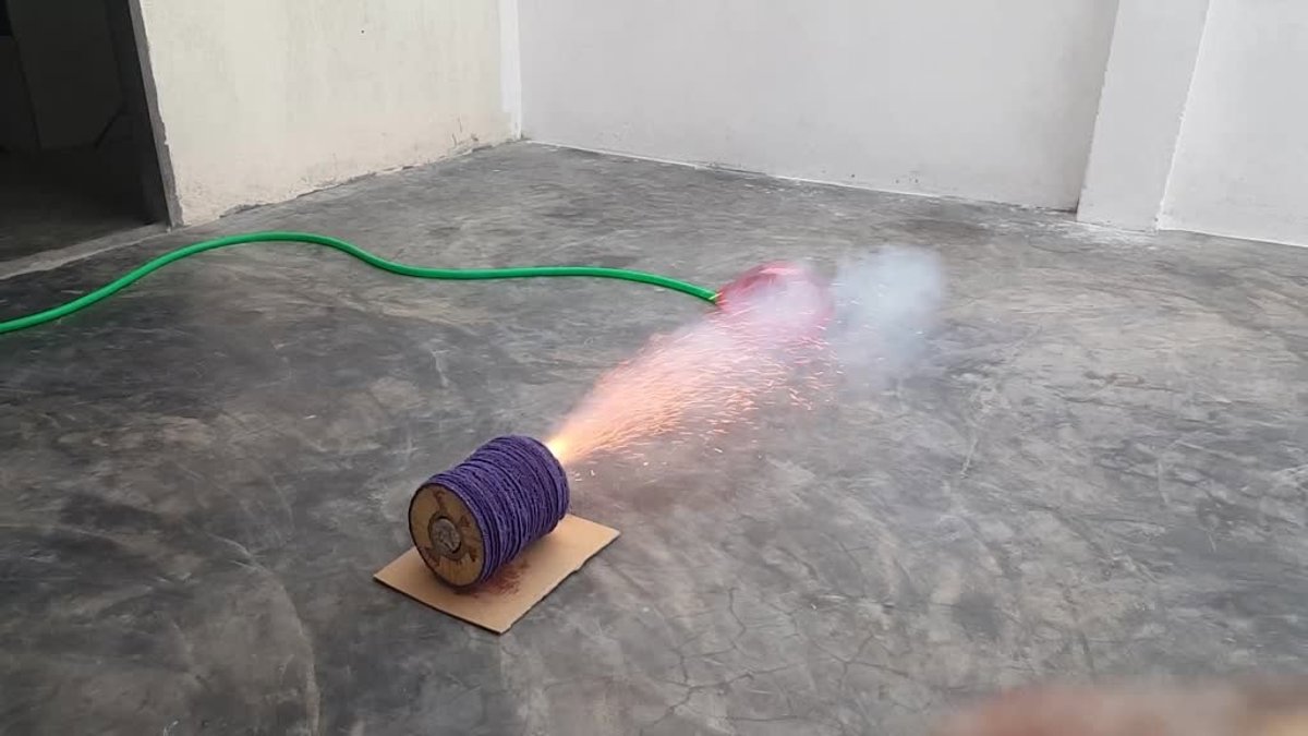 Una vez unidas todas las cerillas, las encendió para probar la potencia de la llama creada. A continuación, colocó un globo de agua cerca, y examinó si la llama sería lo suficientemente fuerte como para reventarla, o si el agua del interior del globo absorbería el calor en su lugar.