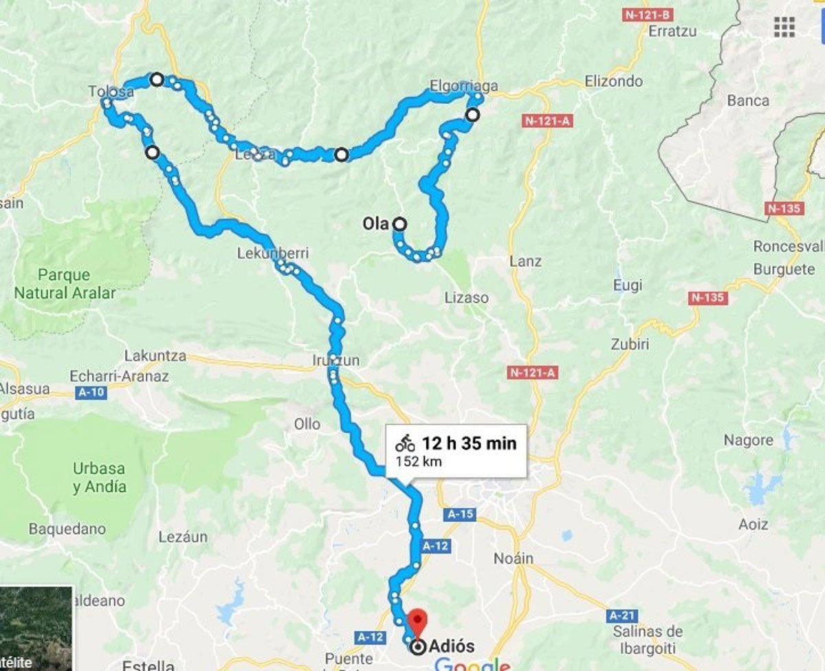 Izaguirre compartió con sus seguidores una ruta entre las localidades de "Ola" y "Adiós" como propuesta para que la Vuelta a Navarra organice esa etapa de 152 kilómetros en su próxima edición.