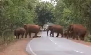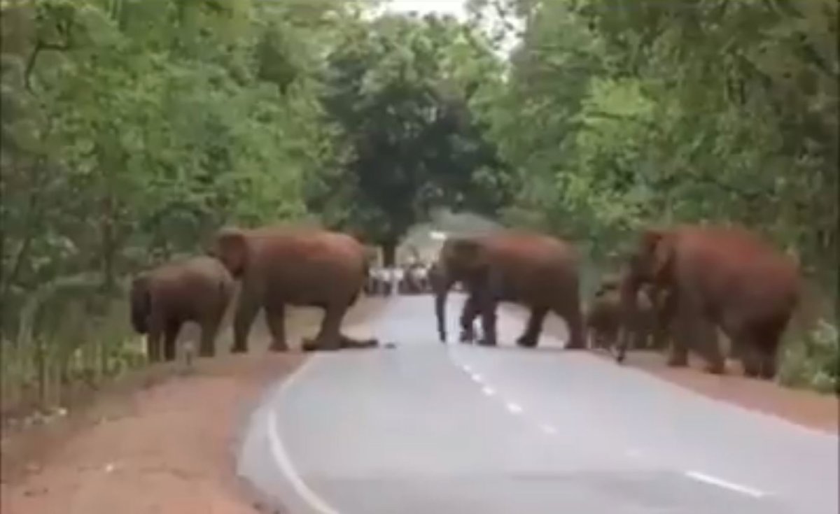 El tráfico dejó de circular por esta carretera de un parque forestal de la India ante lo que parecía ser un funeral realizado por un grupo de elefantes a una de sus crías muertas.