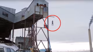 El físico noruego Andreas Whal, del canal de YouTube NRK Viten, quiso ser el conejillo de indias de su propio experimento de física. Wahl sabe que los objetos giran más rápido cuando se acercan a un punto central (leyes de Newton del movimiento circular), por lo que se dejó caer 14 metros atado a una cuerda floja con un peso en el otro extremo y grabar el resultado.