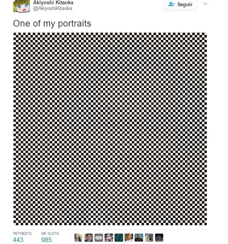 La imagen que Kitaoka compartió no es más que una ilusión óptica hecha con componentes de alta frecuencia espacial que perturban la percepción de los objetos colocados a bajo contraste.