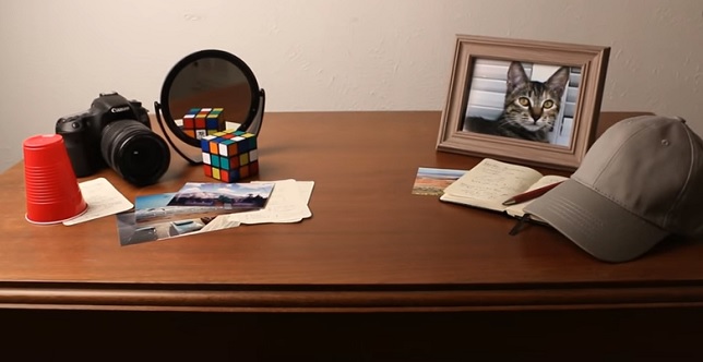En su último vídeo nos presenta un juego mental del que saldrás descolocado. Una gorra, un cubo de Rubik, un portaretrato, una cámara fotográfica, un vaso y un espejo son alguno de los elementos que aparecen expuestos sobre una mesa y con los que la cámara que graba la escena juega sin piedad para nuestro cerebro.