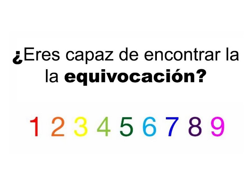 En un posible procedimiento lógico para encontrar el error, es probable que muchos os hayáis dejado llevar por varios factores (aunque no en este estricto orden). El primero de ellos, en una experiencia pasada de algún acertijo visual parecido en el que el error se encontraba en alguna falta de ortografía. El segundo, haber centrado vuestra atención en la serie numérica. El tercero (también probable) haber intentado encontrar un sentido lógico a la serie de colores en que estaban pintados los números.
