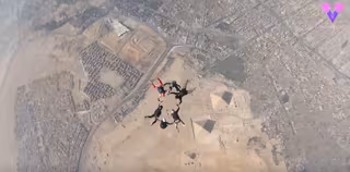 En el video podemos ver y experimentar en primera persona su salto sobre las pirámides de Gizeh y todo el complejo de la Necrópolis, patrimonio de la Humanidad, junto a la ciudad de El Cairo.