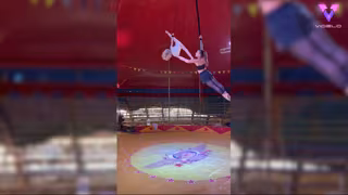 En el vídeo se muestra a Zara Kotenyova realizando sus rutinas de gimnasta aérea ante multitudes en el circo y practicando algunos de sus movimientos con su madre, Regina, de 32 años.