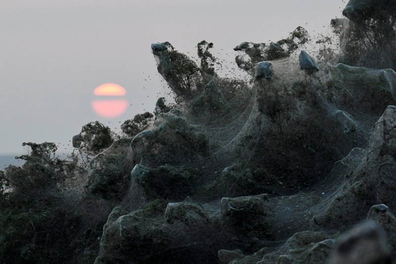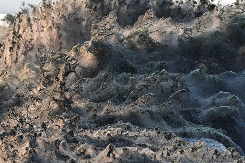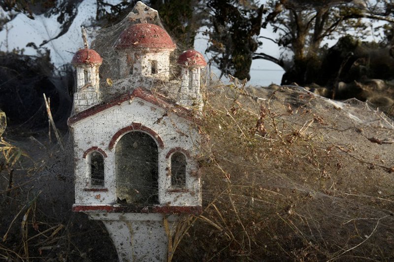 La de Vistonida no es la primera espeluznante imagen que estos pequeños arácnidos tejieron en Grecia este año. En septiembre ya se vio este curioso fenómeno en una ciudad llamada Aetoliko, obra única y exclusiva de las arañas Tetragnatha, un tipo de araña muy común también en Estados Unidos y Canadá.