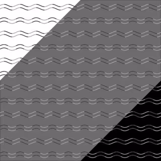 Basta con mirar a la esquina superior izquierda (la del fondo blanco) o la esquina inferior derecha (la del fondo negro) para darnos cuenta de que todas las series de líneas son idénticas y están formadas por ondas sinusoidales (curvas). ¿No es asombroso?