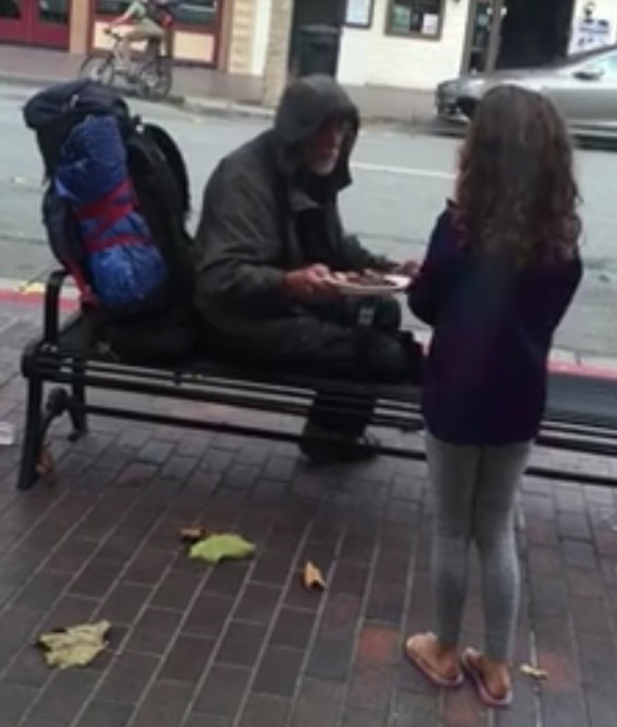 Edwin y Ella están comiendo en un restaurante cuando la pequeña ve por la ventana a un vagabundo y pregunta si puede ofrecerle su plato de comida. El padre la anima a ello y graba el vídeo orgulloso. Cuando vuelve a entrar en el restaurante, su padre le dice que es increíble y que acaba de mejorar el día de ese hombre.