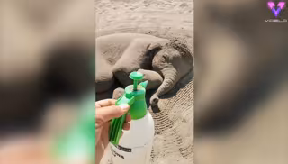 Esta insólita obra de arte da vida a la arena, ya que esta escultura de un bebé elefante tiene un aspecto increíblemente realista.