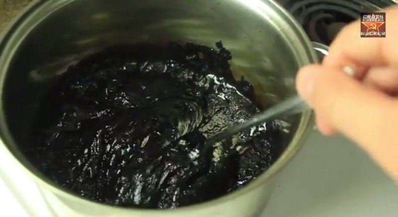 Esa masa negra y espesa parece un hallazgo de petróleo más que lo que queda después de hervir medio litro de Coca Cola. Pero lo más impactante de todo es todo azúcar.