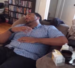 Sabiendo esto, imaginaos cómo de cansado debe estar el padre que protagoniza el siguiente vídeo para actuar de esta manera. El hombre, claramente derrotado, se está echando una cabezadita en el sillón. En la escena no aparece nadie más, pero de fondo se oye el llanto de un bebé de pocos días. El plano se abre y la madre de la criatura es quien la tiene en brazos, pero, curiosamente, es el padre quién, dormido y por instinto hecho rutina, da palmaditas al aire.