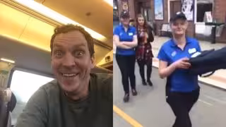 Unos cincuenta minutos después de realizar el pedido, su tren se encontraba parado en la estación de Darlington y el protagonista pudo ver a los repartidores que se acercaron a la puerta y consiguieron entregarle la pizza sin ningún tipo de problema.