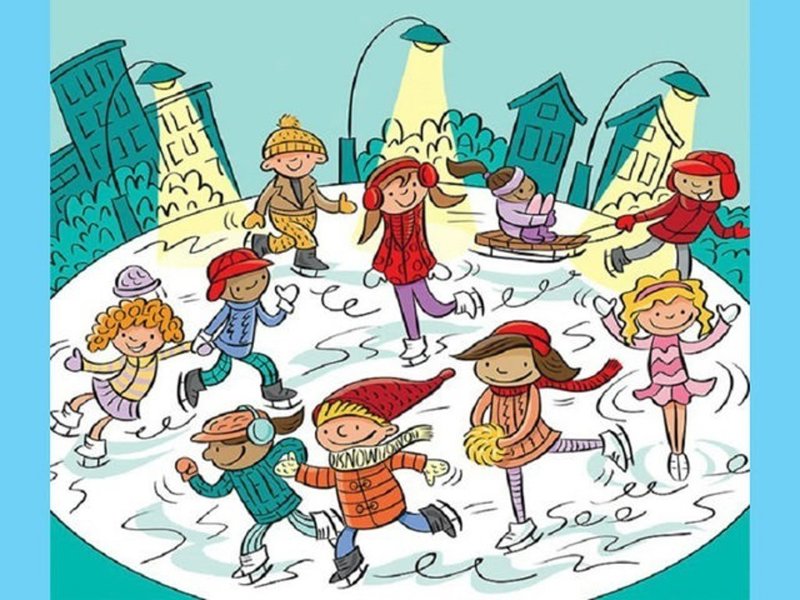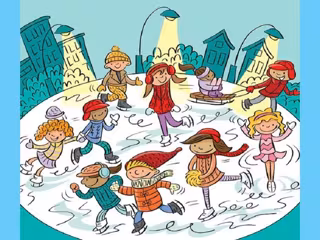 En esta ocasión, la escena se desarrolla en una pista de patinaje sobre hielo rodeada de edificios sobre la que disfrutan 10 niños y niñas, lo que dificulta en cierto modo la tarea de localizar las palabras.