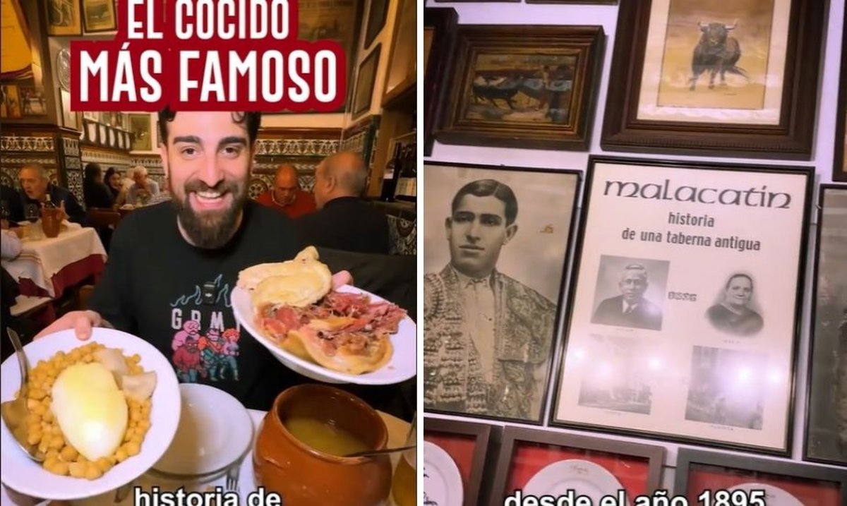 En un vídeo compartido en su perfil de TikTok, Rufo muestra la experiencia de degustar este plato en Malacatín, donde el cocido se sirve en tres vuelcos: primero la sopa de fideos, seguida de los garbanzos y verduras, y finalmente las carnes. "Lo mejor de todo es que puedes repetir todo lo que quieras", comenta el gastrónomo.