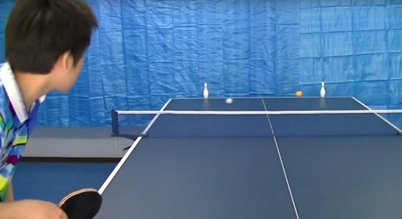 En el vídeo se observa cómo uno de los jugadores logra derribar tres bolos -muy separados uno de otro- con una sola pelota. Luego, otro de los chinos es capaz de lanzar dos pelotas al mismo tiempo, hacer que choquen entre sí y que cada una de ellas derribe a los bolos. Los jugadores también asombran por la variedad de métodos que utilizan para sustituir la raqueta como la tapa de un libro, un peluche y hasta la bocina de un teléfono.