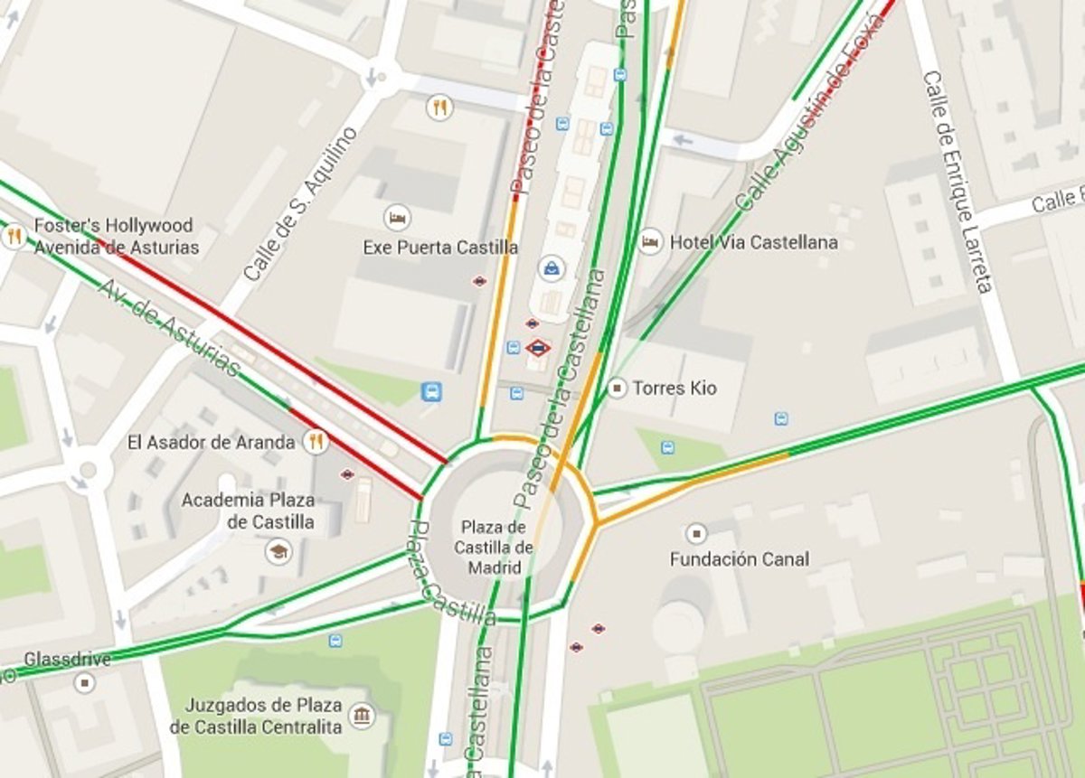 Para interpretar el mapa, tendremos que familiarizarnos con los colores con los que Google Maps define el tráfico, siendo verde para un tráfico rápido y rojo para un tráfico lento.