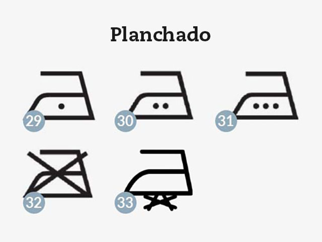 Representados por una plancha, estos símbolos indican si se puede planchar y a qué temperatura máxima.