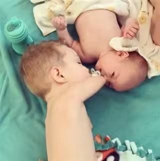 No hay nada que un hermano mayor no haga por el benjamín de la familia. Incluso ponerle un chupete para que deje de llorar. Aunque no tenga manos.