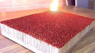 Algo tiene que tener este vídeo de 15 minutos de duración para que sume más de 14.500.000 reproducciones en total desde que este pasado 14 de marzo se subiera a YouTube. Pero, ¿qué es lo que tiene de interesante ver a una persona encender 6000 cerillas y ver cómo se van quemando en un "increíble efecto dominó de fuego"?