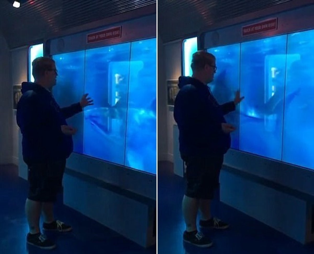 "¡Qué tontería!", podéis pensar algunos. ¿Qué puede pasar en un tanque VIRTUAL de tiburones? ¿Qué puede pasar si lo toco? Pues eso mismo debieron pensar los visitantes del museo que, curiosos y envalentonados, posaron su mano en dicho tanque y casi murieron del susto al encontrarse con esto.