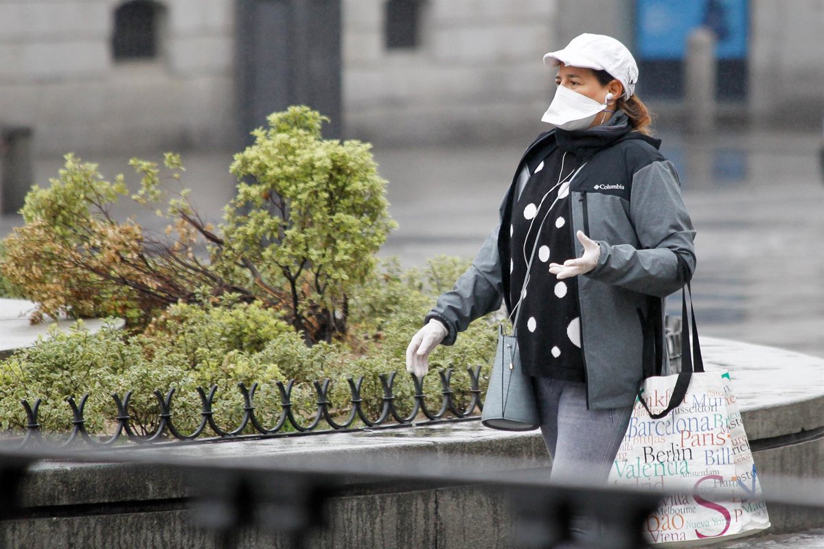 Una mujer protegida con mascarilla y guantes sanitarios realiza compras durante el sexto da del estado de alarma por coronavirus, en Madrid (Espaa) a 21 de marzo de 2020. - Óscar J.Barroso - Europa Press