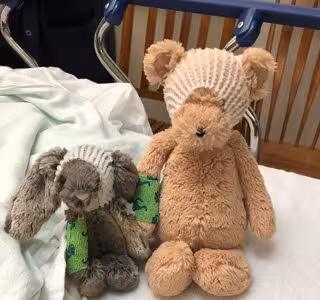 "Las enfermeras son las mejores. Vendaron a los animales de peluche de mi hijo de 4 años con el mismo vendaje que recibió después de la cirugía de cráneo para que al despertarse los encontrara así".