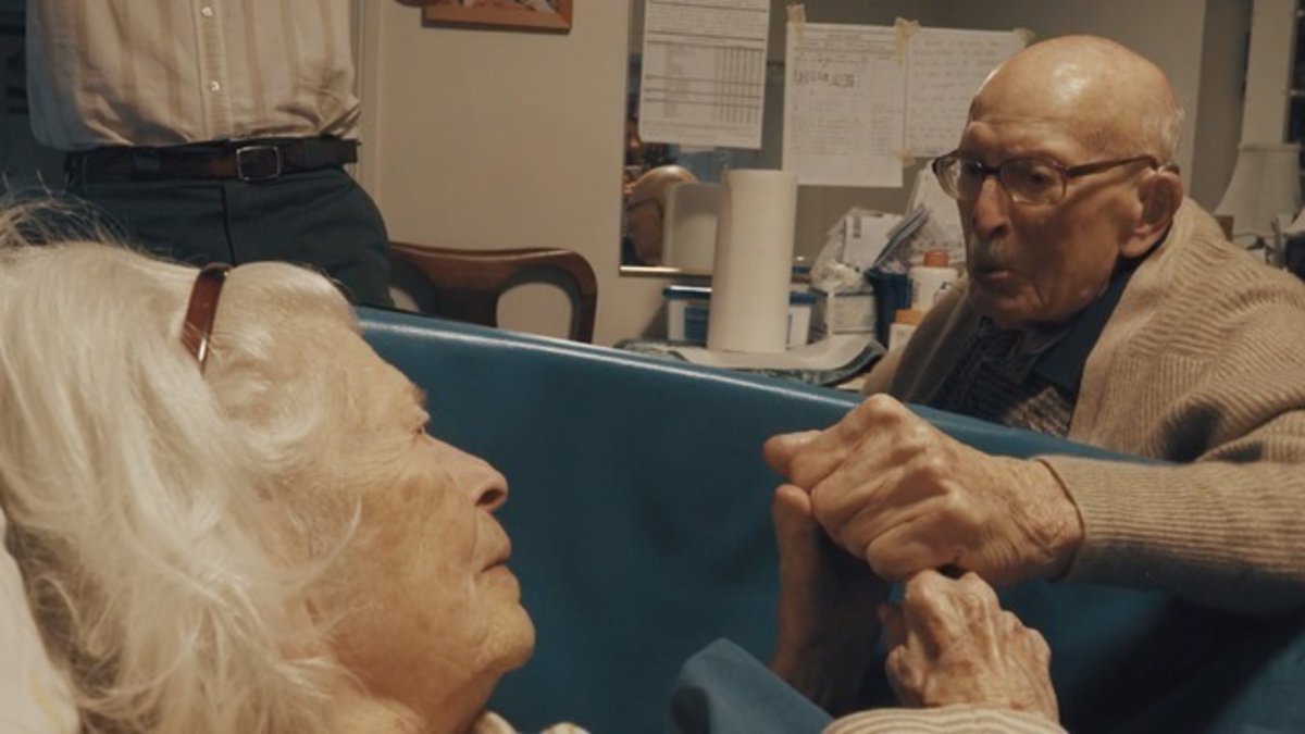 "Te he amado durante 80 años, cariño. Eso es mucho tiempo", le dice Arthur a su esposa. Ella, a pesar de que no puede expresar sus sentimientos a través de las palabras, le da un beso en la mano a su marido.