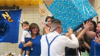 Aaron, el padre de la criatura, celebraba su cumpleaños en familia. Un payaso amenizaba la velada, y pronto hizo de maestro de ceremonias. Hizo una pequeña presentación y pidió al hombre que abriera un enorme regalo que estaba esperándole. Cuando estaba en mitad de este proceso, la caja comenzó a moverse y de ella salió la hija a la que desde hacía tanto tiempo que no veía con los brazos abiertos, visiblemente emocionada. El abrazo no se hizo esperar: