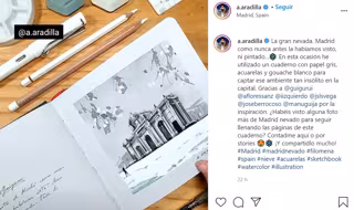 La ilustradora Alicia Aradilla ha sacado sus pinceles para captar las imágenes más espectaculares de la ciudad de Madrid bajo la nieve tras el paso de la borrasca Filomena.