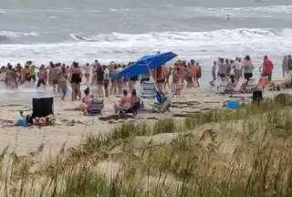 En la playa ondeaba la bandera roja desde hacía días debido a las condiciones peligrosas del oleaje y la ciudad de Emerald Isle instó a la gente a permanecer fuera del agua por este motivo y tras conocerse que un hombre de 41 años había muerto ahogado en esas mismas aguas recientemente.
