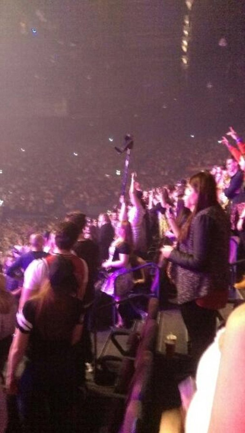 Ni los abucheos, ni los gestos parecían hacerle entender al músico que la persona a la que se estaba dirigiendo no podía ponerse en pie. Entonces, detuvo la canción 'Good Life' diciendo: "Esta es la vez que más he tenido que esperar para cantar una canción. Es increíble" antes de enviar a su guardaespaldas a comprobar el motivo.