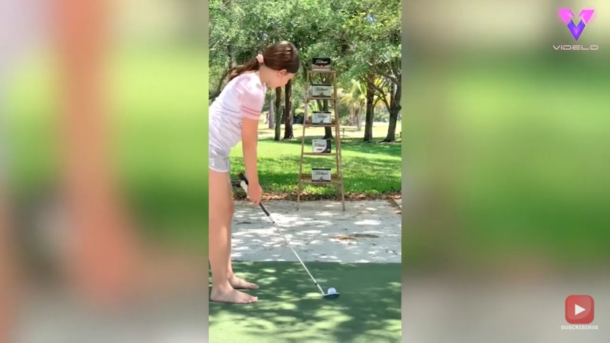 Olivia Hartman, una niña estadounidense de 10 años, aficionada al golf, decidió lanzarse a realizar el reto y puso a grabar su cámara.