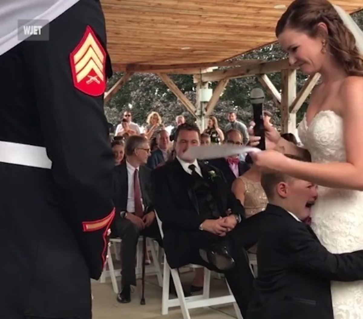 En el momento de leer sus votos, Emily quiso dedicar unas preciosas palabras a su hijo adoptivo Gage, hijo biológico de Joshua. En un momento del acto, el niño no pudo contener las lágrimas de la emoción y rompió a llorar.