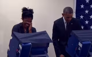 El presidente Obama se encontraba realizando su votación anticipada este lunes, en Chicago, con la esperanza de alentar la participación de los demócratas en las elecciones legislativas de noviembre, cuando se vio envuelto en una situación de lo más hilarante.