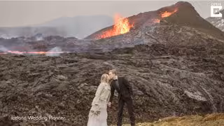 Un volcán activo, que arroja lava fundida y humo, fue el impresionante telón de fondo para que esta pareja de novios inmortalizara en fotografías su compromiso.