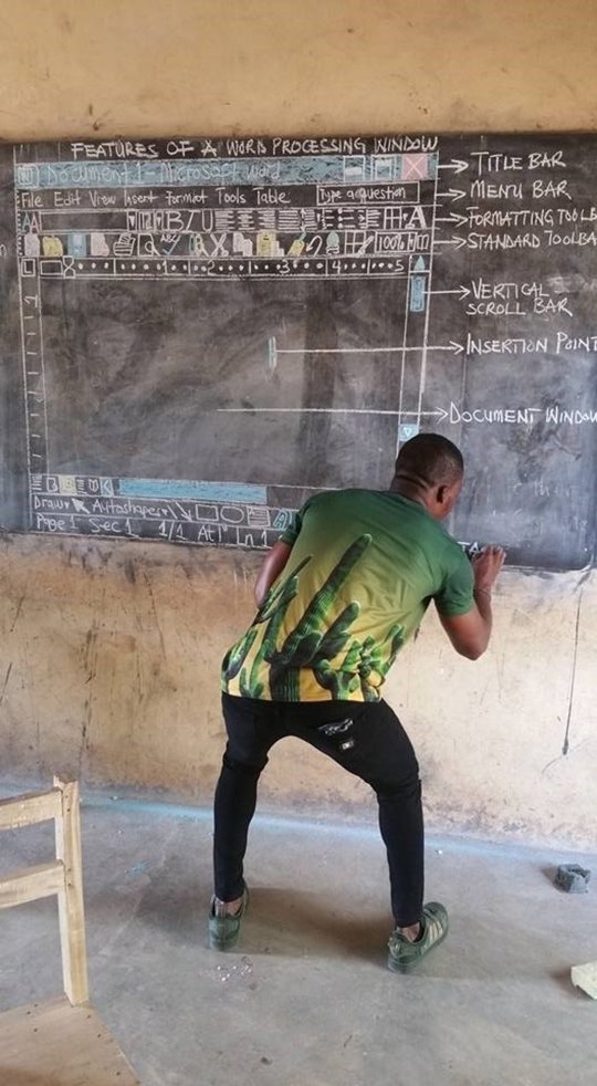 El pasado 15 de febrero, un post de Richard Appiah Akoto, alias Owura Kwadwo Hottish, profesor de una escuela rural al sur de Ghana, logró traspasar las fronteras y conmover a miles de personas por su esfuerzo y dedicación para con sus alumnos. En aquel post el profesor demostró que no disponer de medios económicos, ni de recursos tecnológicos no era excusa, al compartir su particular metodología a la hora de enseñar a utilizar el programa 'Microsoft Word' dibujándolo en una pizarra.