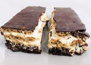 Por último, se vuelve a meter todo en la nevera hasta que se endurezca y cuando esté listo, se parte por la mitad y se come.