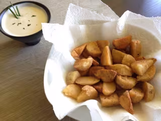 Las patatas gajo, también conocidas como 'Patatas Deluxe', son un pequeño manjar que bien puede servir de acompañante para platos principales o como entrante para picar y compartir entre los comensales invitados a la mesa este domingo. Sobre todo si junto con una buena ración de patatas gajo servimos la salsa especial que le dio su nombre.
