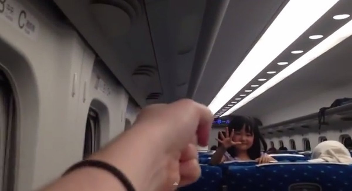 Eso mismo les pasó a estos dos amigos escoceses que se encontraban en Japón. Los chicos estaban de viaje en un tren bala que viajaba de Kioto a Shin-Osaka, cuando una pequeña niña japonesa asomó su cabeza de entre las filas del tren, y les saludó. Tras devolverle el saludo, la niña mostró sus intenciones: quería jugar al Jan-Ken, el piedra, papel o tijeras japonés.