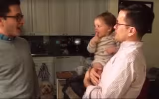Este dilema es el que le plantea Stephen Ratpojanakul a su hijo de 16 meses. El pequeño Reed, en brazos de su padre, es cogido también en brazos por su tío Michael, que le pregunta a continuación, señalando a Stephen, "¿quién es ese?". El bebé se fija entonces en su padre y responde "papá" y reclama volver a su lado.