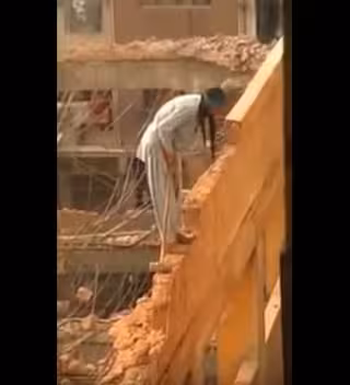 La grabación, publicada este mismo martes, muestra a un hombre (carente de cualquier tipo de protección) trabajando en la demolición de una vivienda. El individuo se encuentra de pie en el borde del edificio, que no debe tener más de 30 centímetros de grosor.